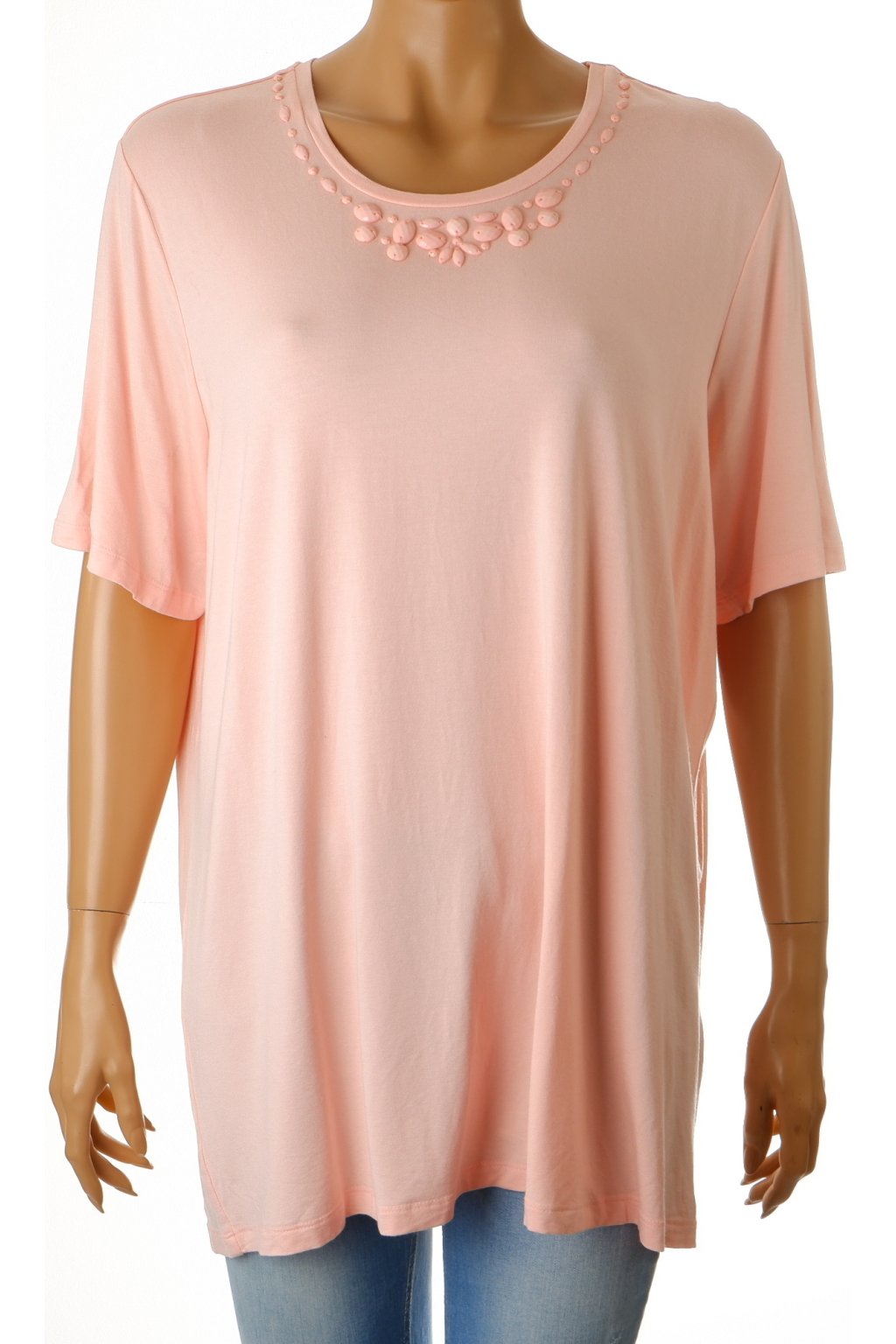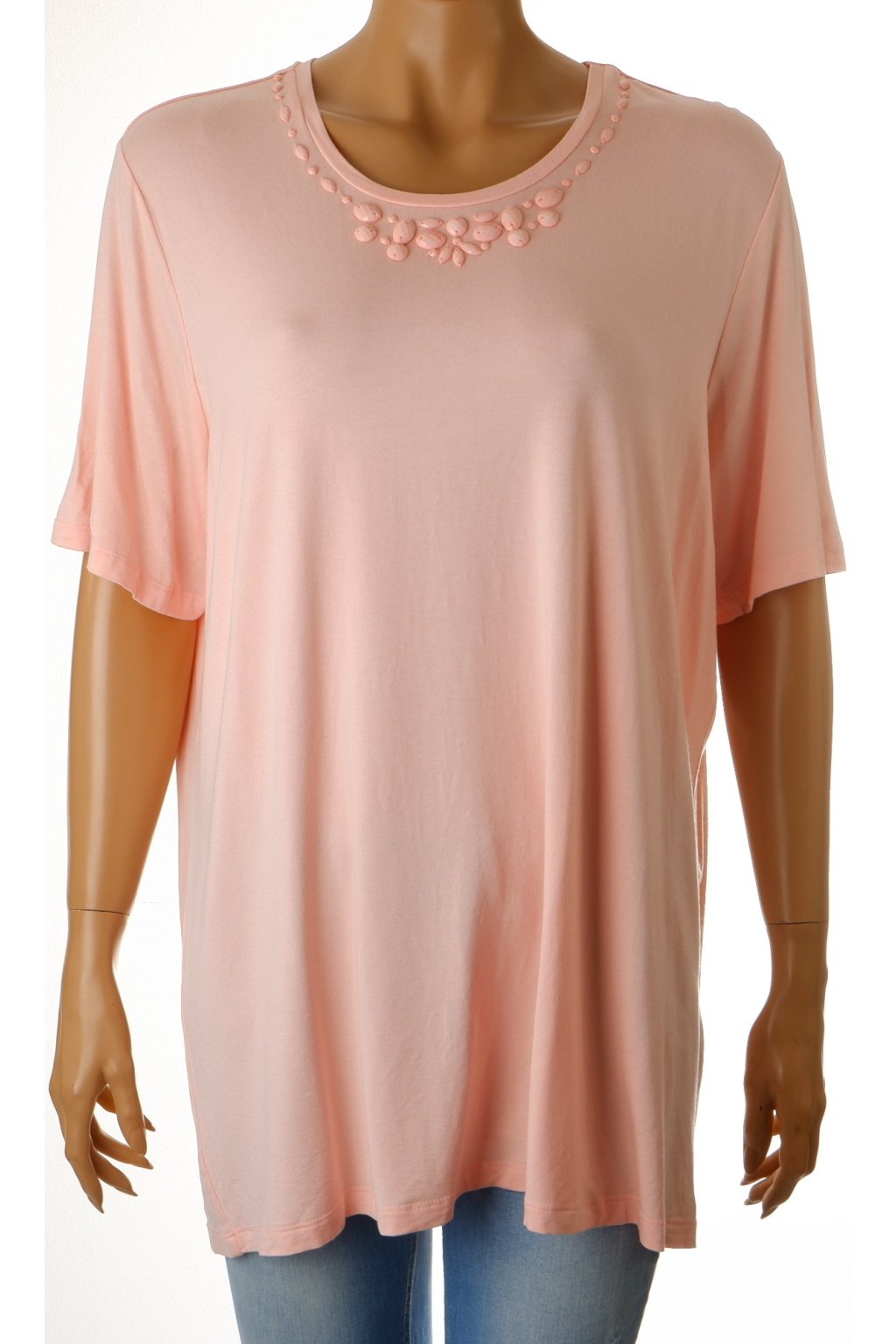 Tričko Helena Vera růžové s korálky kolem krku vel. 50 / XL - XXL