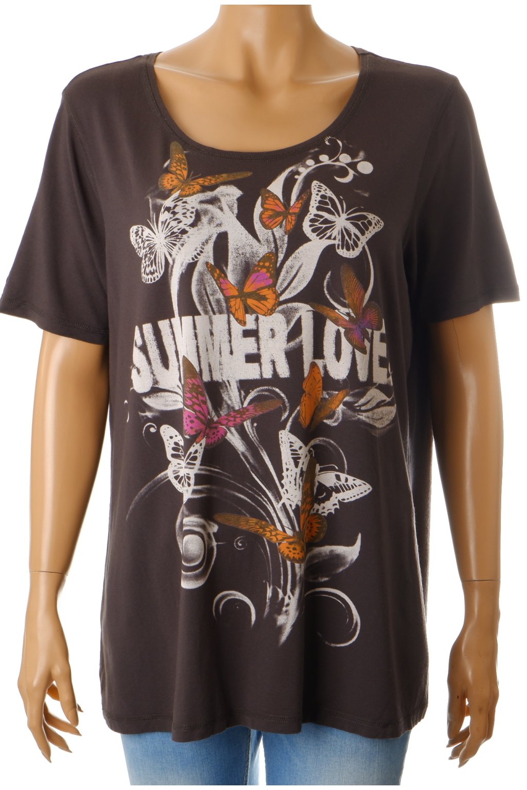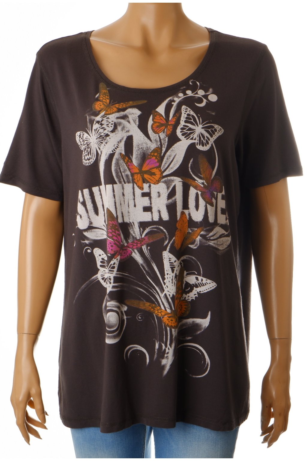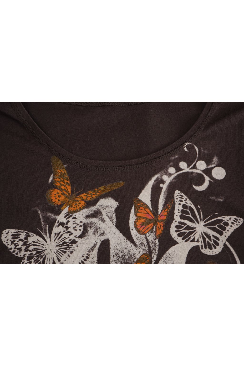 Tričko hnědé s obrázkem motýlů vel. 46 / uk 20 / XL