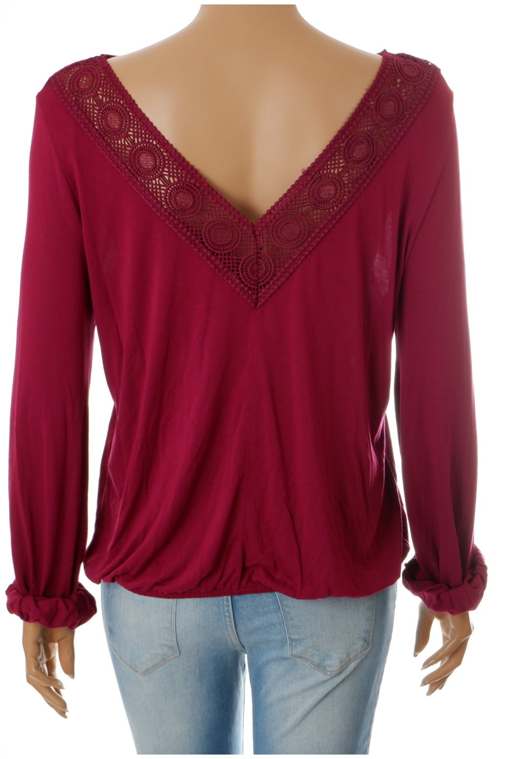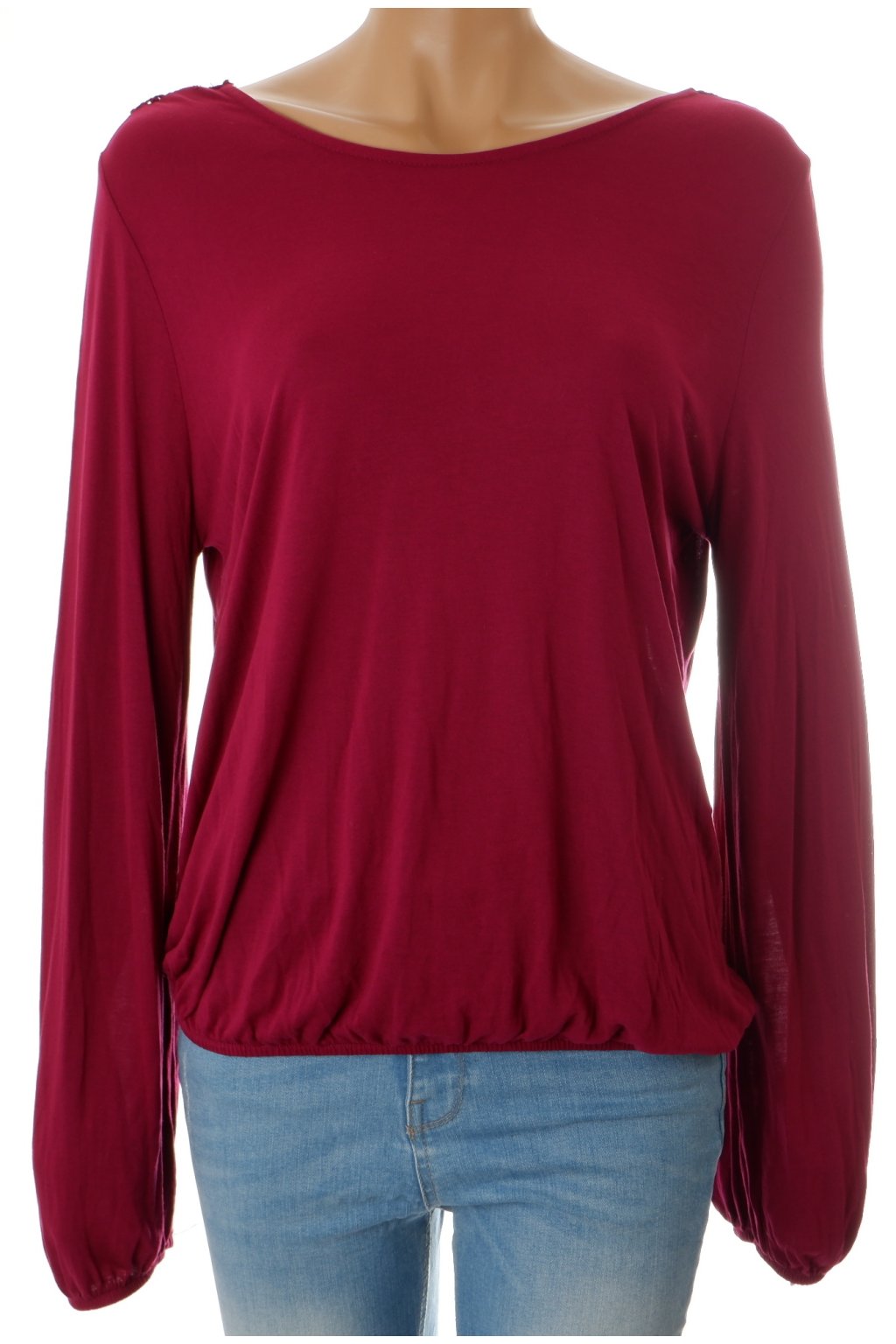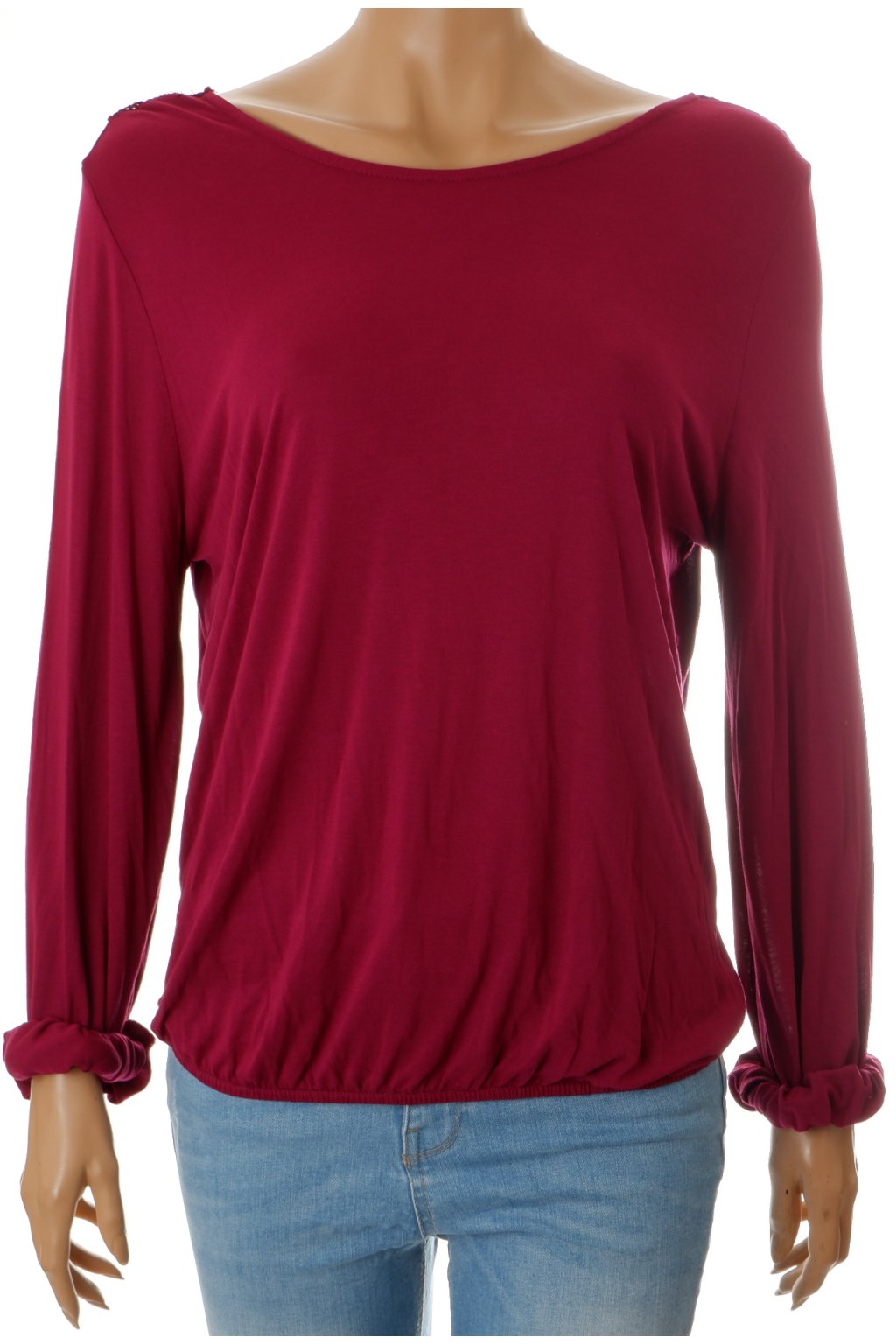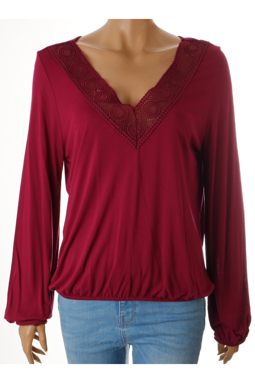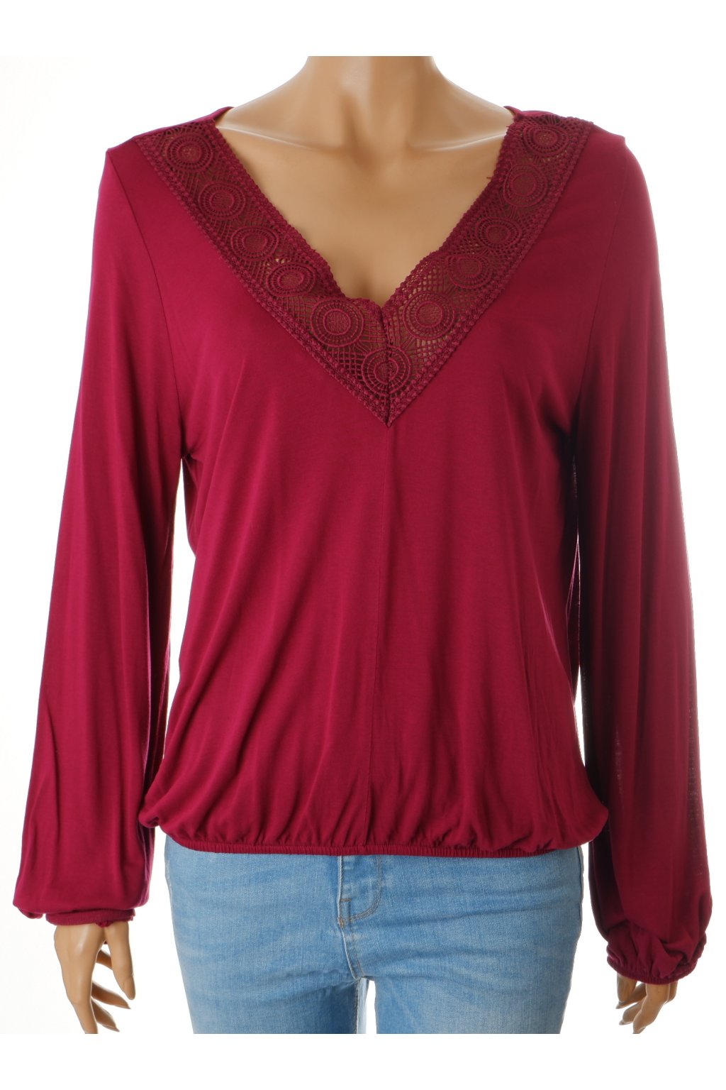 Tričko Lascana tmavě vínovo fialové s krajkou dole do gumky vel. M - L / uk 14 - 16 / 40 - 42