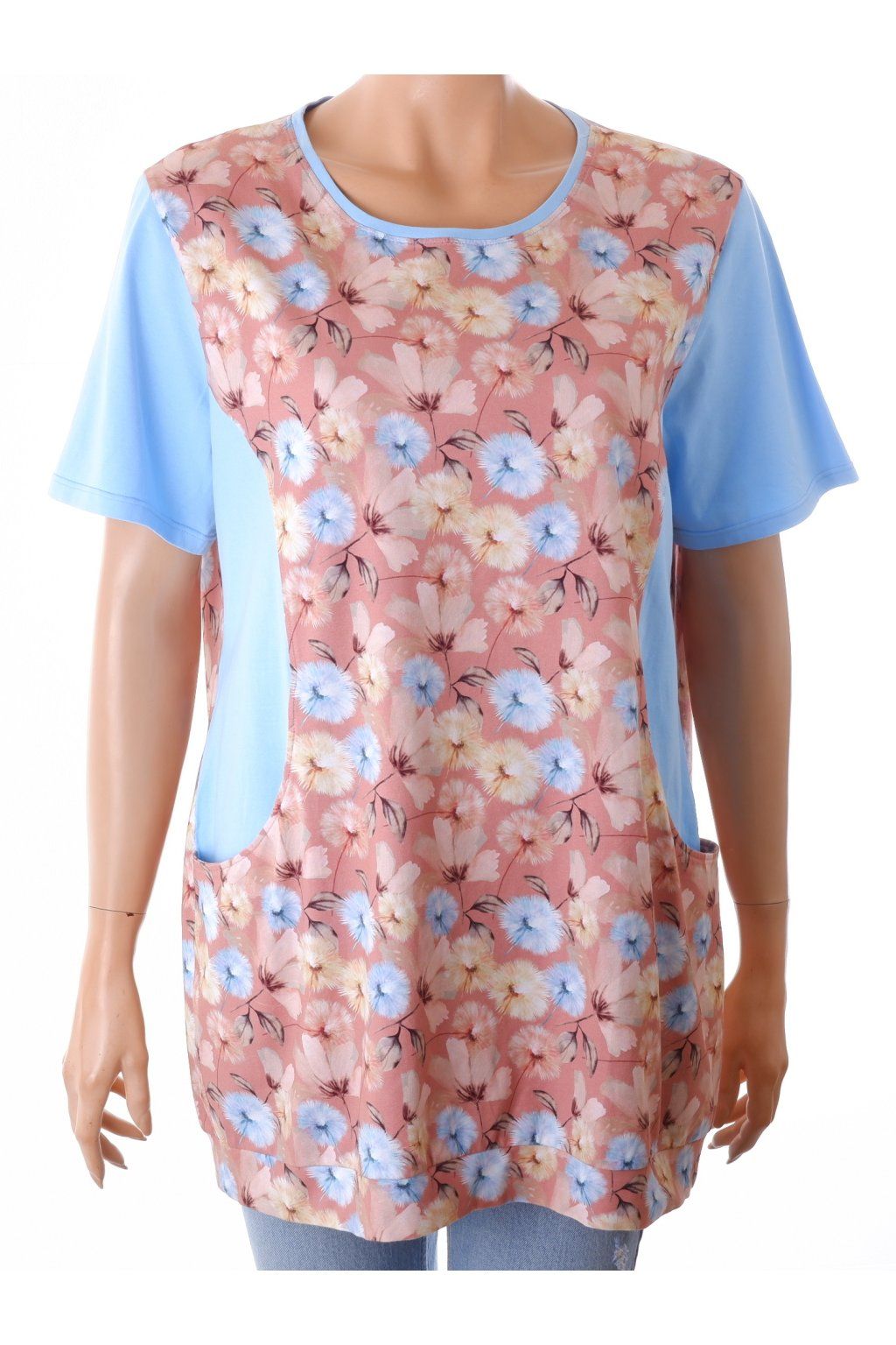 Tričko modro hnědé s květy tunika vel. L