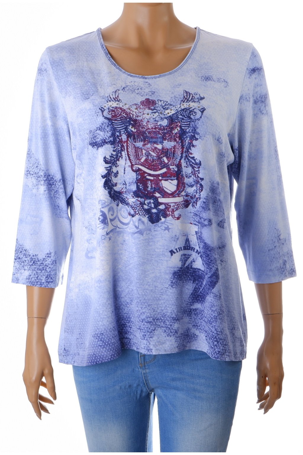 Tričko Rabe modré s obrázkem a kamínky vel. 46/ uk 20 / L - XL