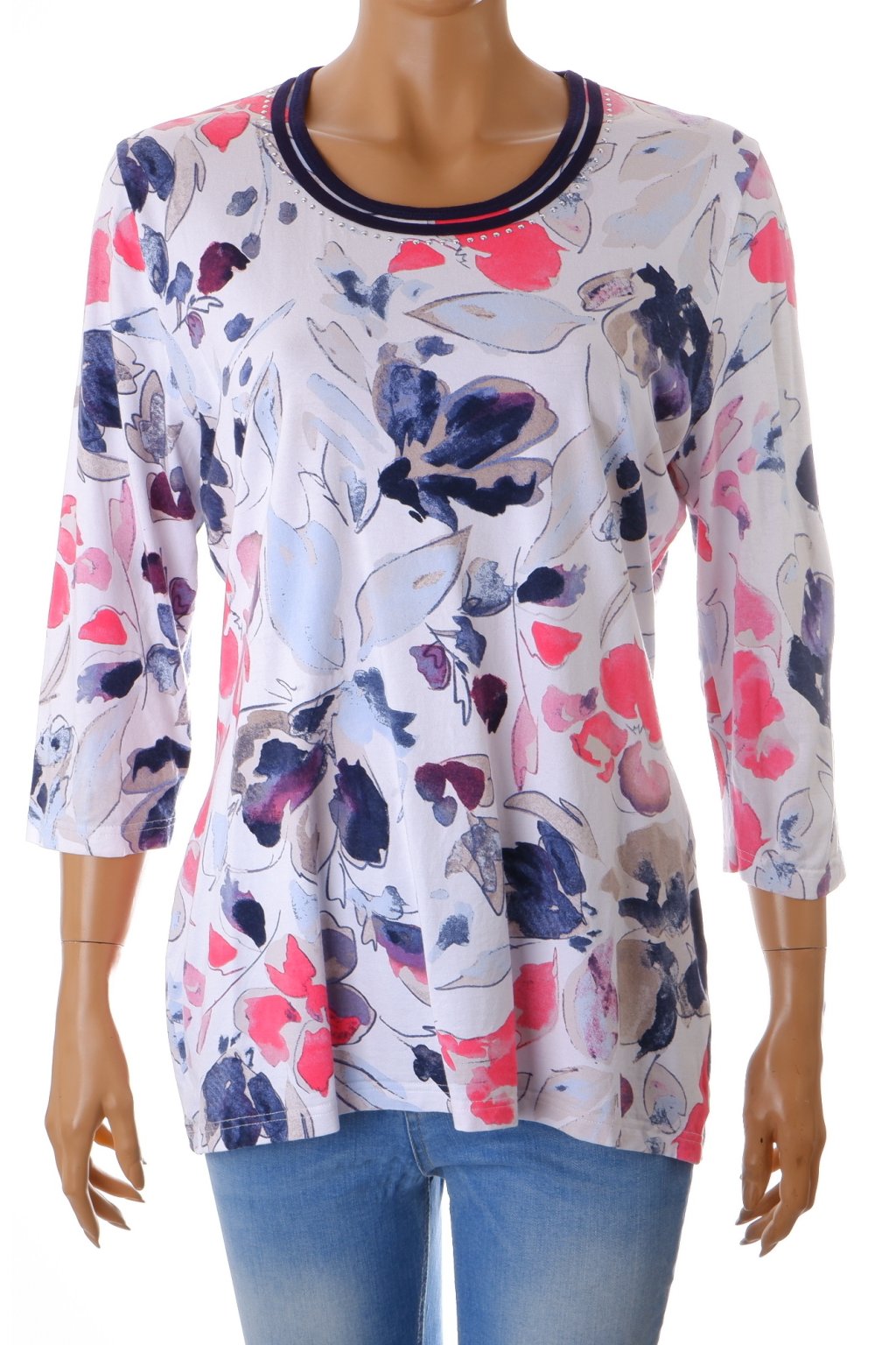 Tričko Rossler bílé květované s kamínky vel. 44 / uk 18 / L - XL