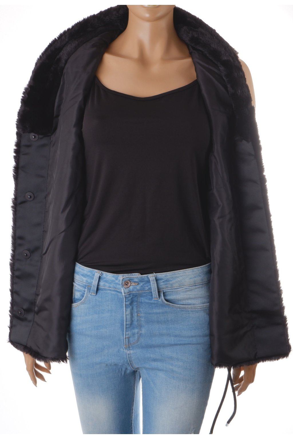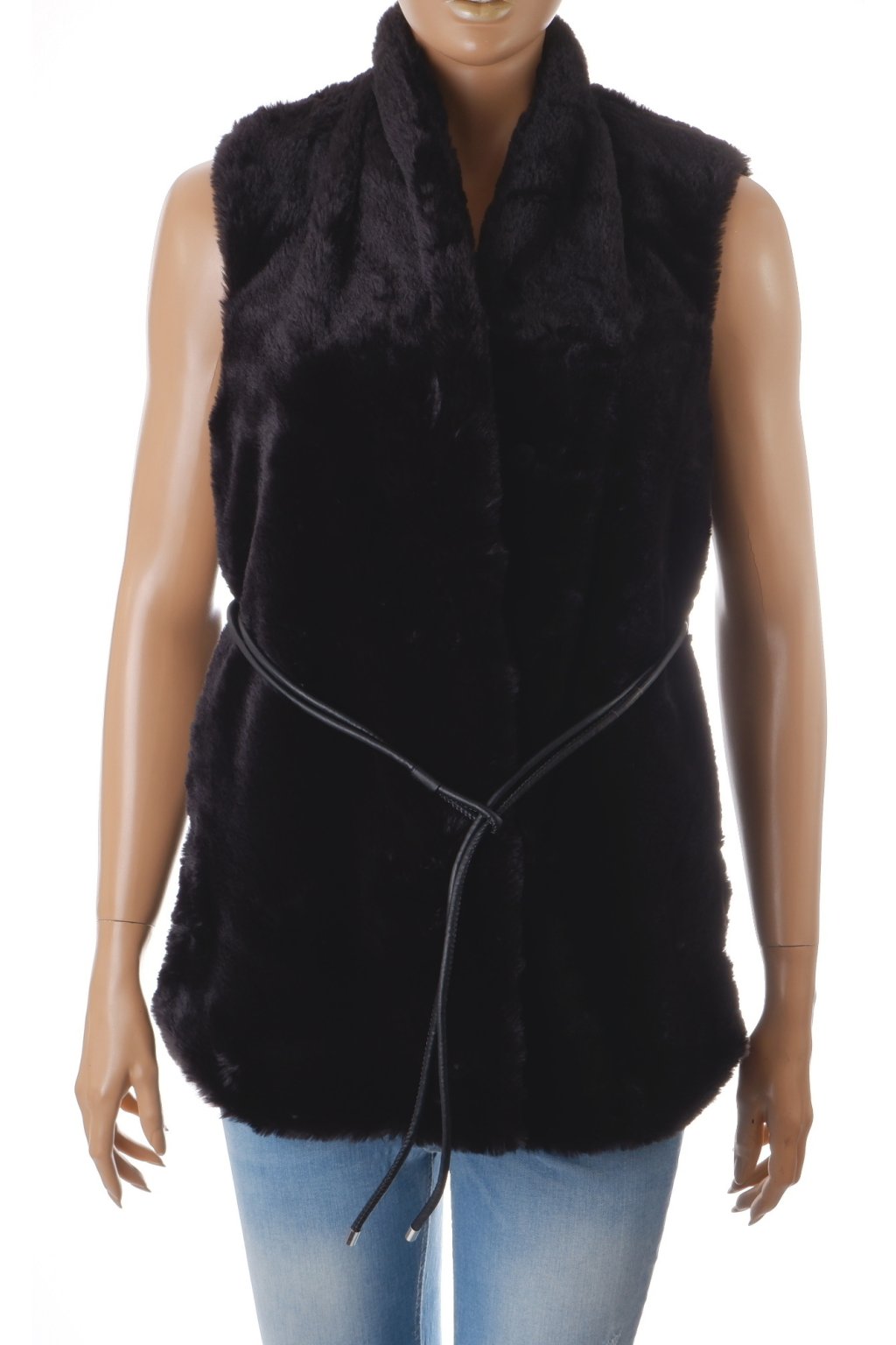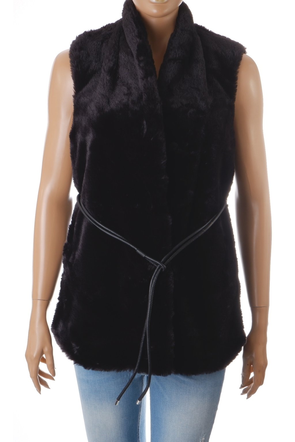 Vesta Reserved kožíšek černý s koženkovým opaskem vel. S